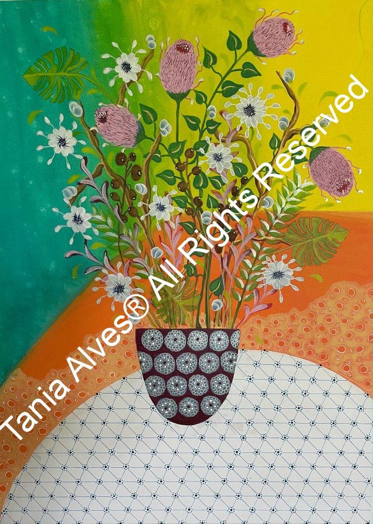 Flowers and Vases was born out of inspiration from other artist’s work as I began to re- explore some old techniques; a good color pallet or a funny flower form… a method I fell in love with, and I can paint this style my whole life without getting tired. The result always surprises me and makes me smile with satisfaction. So, you can be sure to always find new work here.
