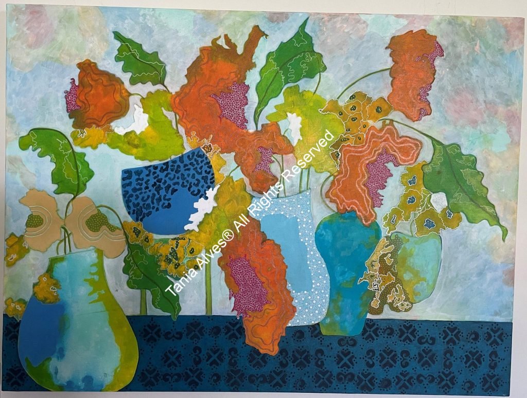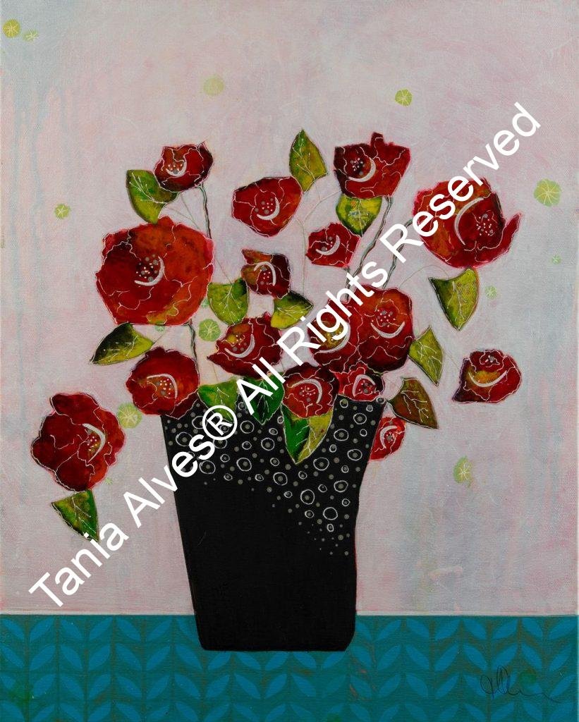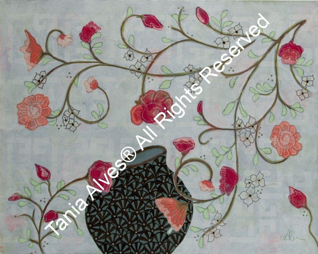 Flowers and Vases was born out of inspiration from other artist’s work as I began to re- explore some old techniques; a good color pallet or a funny flower form… a method I fell in love with, and I can paint this style my whole life without getting tired. The result always surprises me and makes me smile with satisfaction. So, you can be sure to always find new work here.
